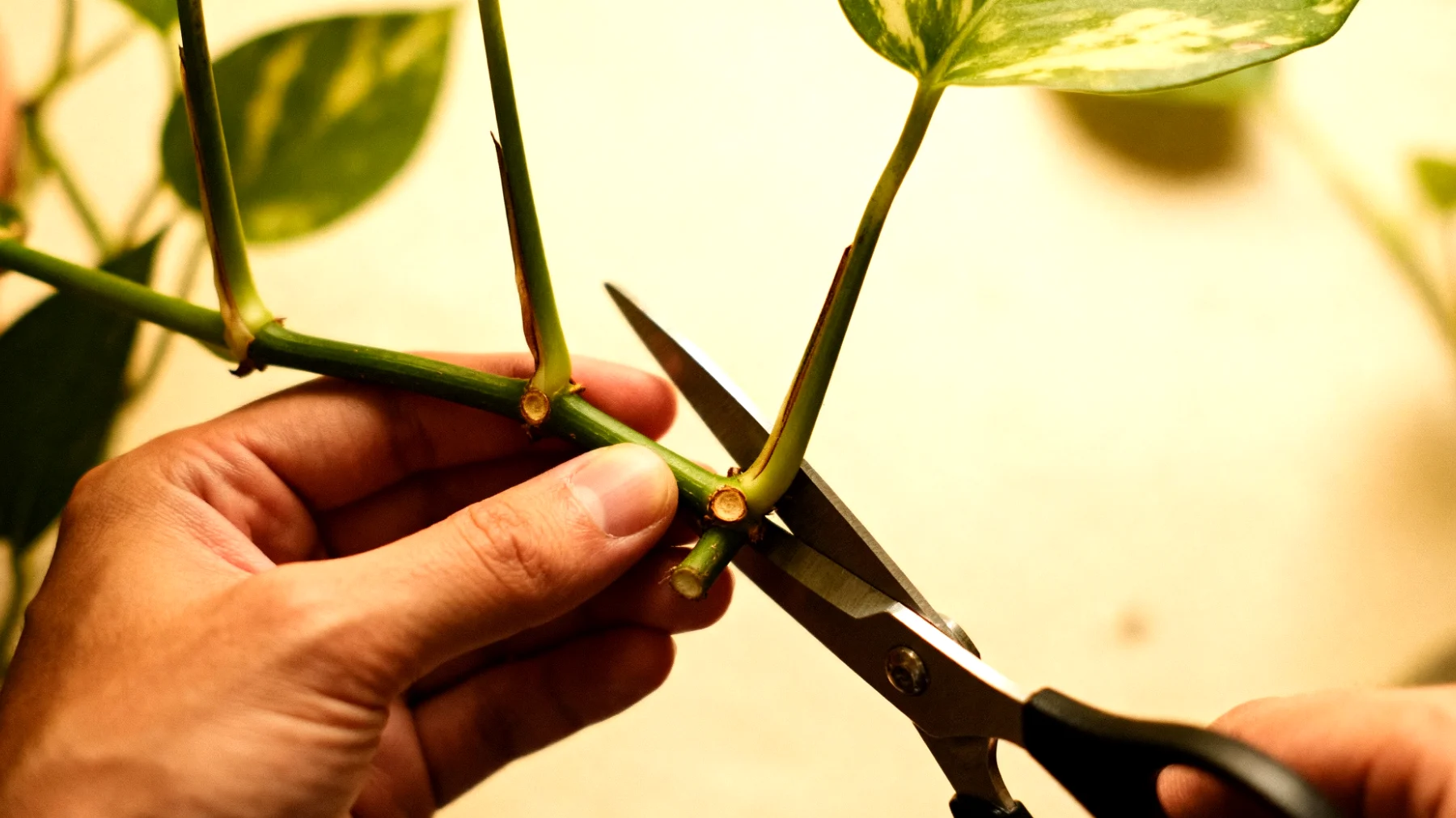 Con questo semplice taglio, non solo incoraggi la pianta madre ad espandersi con nuova vegetazione, ma recuperi materiale da usare per ottenere altri Pothos. È un circolo virtuoso in cui nulla va sprecato: ogni segmento tagliato diventa una potenziale nuova pianta, e la pianta originale beneficia dell’intervento rinvigorendo la sua struttura.